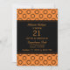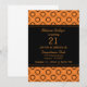 Funky and unique Classic Refinement 21st Birthday Party Invitation in orange and black featuring a hip and trendy circle patterned background. This stylish invite sets the right tone for a perfect night of fun and partying! Customise this sassy invite with the details of your party!