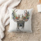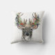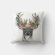 Classic Reindeer Pillow in Watercolor Print with Christmas Decorations on the Antlers. The perfect holiday accent.