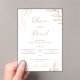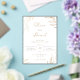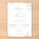 An elegant wedding invitation card featuring delicate hand-drawn botanical branches and leaves in warm gold tones on a soft white background. The design blends flowing calligraphy script with refined serif typography, creating a timeless and luxurious feel. Subtle beige watercolor accents add depth and warmth, making this design perfect for couples who want a chic, nature-inspired celebration with a touch of golden sophistication