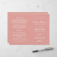 A warm rose gold background sets a romantic tone for this classic ceremony program, with elegant white script and serif typography presenting "The Wedding Of" in beautiful contrast. A decorative scroll flourish completes the polished design. Inside pages are fully customisable for your bridal party, ceremony order, and a personal thank you message on the back cover. Programs are printed on text-weight paper and arrive flat, requiring a simple centre fold.
