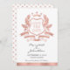 A faux simulated rose gold foil crest and ornamental elements design. Personalise the custom text above. You can find additional coordinating items in our "Classic Rose Gold Crest Wedding" collection.