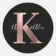 Classic Rose Gold Foil Wedding Monogram K Black Round Sticker