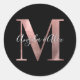 Classic Rose Gold Foil Wedding Monogram M Black Classic Round Sticker