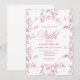 Invite guests to celebrate with this elegant bridal shower invitation featuring classic French toile de Jouy roses. Soft dusty pink, blush, and pink and white floral patterns create a romantic vintage look, beautifully accented with refined rose gold details. Professionally printed by Zazzle, this design delivers crisp text, rich color, and a smooth, premium finish that highlights every rose and floral detail. Perfect for a timeless, floral, or classic bridal shower theme, this invitation is fully customizable and arrives polished, photo-ready, and ready to impress your guests.