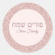 Classic Rose Pink Glitter Hebrew Happy Purim Round Sticker