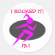 "I ROCKED IT, 13.1," Running Girl round sticker. Available in 2 sizes◦Large: 3" in diameter (6 per sheet), Small: 1.5" in diameter (20 per sheet) High quality, full-colour, full-bleed printing.Scratch-resistant front, easy peel-and-stick back