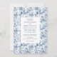 Make a lasting first impression with this French toile de Jouy wedding invitation, beautifully designed to showcase the best printing quality available on Zazzle. Featuring intricate floral patterns in rich navy, royal, dusty, and deep blue tones, this invitation blends timeless European elegance with refined modern presentation.