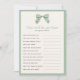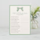 Editable game title and text questions for baby shower or bridal shower. How well do you know mum to be, who knows mummy best game. Features a hand painted bow with subtle plaid in Sage Green and ivory background; editable border and background colour on front and back.