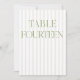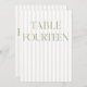 This elegant table number features a soft beige striped background with refined sage green serif typography and subtle script accents. Designed for garden weddings, refined receptions, and timeless outdoor celebrations.