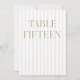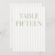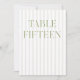 This elegant table number features a soft beige striped background with refined sage green serif typography and subtle script accents. Designed for garden weddings, refined receptions, and timeless outdoor celebrations.