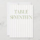 This elegant table number features a soft beige striped background with refined sage green serif typography and subtle script accents. Designed for garden weddings, refined receptions, and timeless outdoor celebrations.
