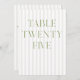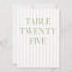 This elegant table number features a soft beige striped background with refined sage green serif typography and subtle script accents. Designed for garden weddings, refined receptions, and timeless outdoor celebrations.