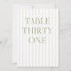 This elegant table number features a soft beige striped background with refined sage green serif typography and subtle script accents. Designed for garden weddings, refined receptions, and timeless outdoor celebrations.