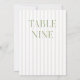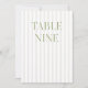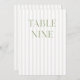 This elegant table number features a soft beige striped background with refined sage green serif typography and subtle script accents. Designed for garden weddings, refined receptions, and timeless outdoor celebrations.