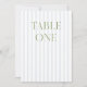This elegant table number features a soft blue striped background with refined sage green serif typography and subtle script accents. Designed for garden weddings, refined receptions, and timeless outdoor celebrations.