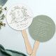 Elegant sage green floral crest wedding ceremony timeline hand fan with monograms, perfect for a modern classic or romantic vintage wedding. For more advanced customisation of this design, Please click the "Customise further" link. Matching items are also available. ***Purchase pre-assembled for an upcharge***