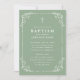 Classic Sage Green Dainty Floral Frame Baptism Invitation