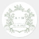 Classic Sage Green Floral Crest Monograms Classic Round Sticker