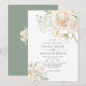 Modern stylish sage wedding invitation with watercolor gold greenery and ivory roses, modern calligraphy. Classy and elegant, simple and modern invitation.