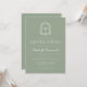 This classic, elegant graduation party invitation design features a white monogram initial in open serif font encircled by a line art acanthus crest on a sage green background. Personalise the text with the graduate's name and the party details. The back of the card is solid sage green. Ideal for a high school, college or university graduate.