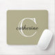 Classic Sage Green Script Monogram Mouse Pad