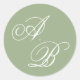 Classic Sage Green & White Monogram Script Wedding Round Sticker