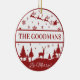 This classic red and white Christmas ornament will be a family keepsake for years to come. The red and white design features Santa and his reindeer flying through the night over a deer surrounded by pine trees with the words "Be Merry". Personalise by adding your family name or special text.