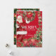 This classic Christmas holiday card features Santa Claus, a wreath, stocking, assorted presents with a red bow/ribbon, poinsettias and hollies. The reverse side features your photo on a green background with golden bells and hollies. Personalise it for your needs. You can find matching products at my store.