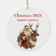 Classic Santa Claus Riding a Reindeer Christmas Ceramic Ornament