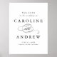 A Classic Script Black and White Wedding Welcome Sign featuring the couples names and elegant calligraphy script and with event date and location. Click the edit button to customise this design with your details.