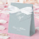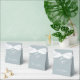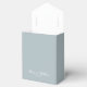 Classic light dusty blue wedding Thank You favour box. Thank You with bride and groom names and date in elegant script text.