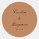 Classic Script Elegant Wedding Custom Terracotta Round Sticker