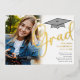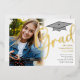 Celebrate your milestone with this graduation photo template party invite, featuring real gold foil for a touch of elegance. Perfect for high school or college graduates, this traditional announcement showcases a senior photography style with a simple grad cap design. The elegant calligraphy script and trendy typography design create a minimalist classy look, making it a sophisticated way to announce your class of celebration in style.