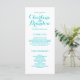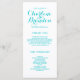 Elegant Wedding Programs. Turquoise text on white background. Design by Elke Clarke © Available at www.zazzle.com/monogramgallery. Customise with your background colour and all your personal information to create a simple yet sophisticated program which your ushers can hand out as your guests enter the church or are seated where the ceremony will take place. It helps people follow along during the ceremony but also acts as a keepsake for your guests. You can use the template fields to fill in the suggested information about your wedding party and order of service and thank you message or select "customise it" and use the edit menu to change the text spacing, fonts, colours as you wish to create your own wedding programs.