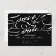 Elegant save the date postcards in classic black and white feature embellished calligraphy script lettering for a classic, formal look. Personalize the reverse side with your wedding details, including names, date, location, and additional information like your wedding website. Space provided for your pre-printed return address.