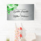 Elevate the grand entrance to your wedding celebration with our Classic Silver and Green Roses Wedding Welcome Banner, adorned with a breathtaking bouquet of green roses. This stunning banner serves as a captivating focal point, greeting your guests with elegance and grace as they arrive to celebrate your special day. The shimmering silver backdrop exudes sophistication and pairs beautifully with any wedding theme, while the lush green roses add a touch of natural beauty and symbolise growth, harmony, and the beginning of your shared journey. Crafted with meticulous attention to detail, this exquisite banner is the perfect way to set the tone for an unforgettable celebration. Whether you're hosting an intimate gathering or a lavish affair, our silver wedding banner with its green rose bouquet creates a warm and inviting atmosphere, welcoming your loved ones with style and grace. Let this enchanting banner be a reflection of your unique love story, capturing the essence of your special day and leaving a lasting impression on all who attend. Welcome your guests in style and make a statement with our Classic Silver and Green Roses Wedding Welcome Banner, a timeless addition to your wedding décor that will be cherished for years to come.