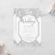 Elegant white and silver foil look (not real foil) wedding invitation with text fields both sides for adding wedding ceremony, wedding reception, rsvp, gift registry details as desired.