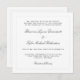 A tasteful wedding invitation with classic simplicity, this square shaped wedding invitation design features a thin silver lined border surrounding your text and embellished with elegant script. You can add, remove or adjust the placement of the text to suit your needs. The ever popular white background adds to the clean simplicity of this design.