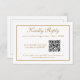 Simple and elegant, this wedding RSVP card has a thin gold line border on front and back and matching gold text that may be edited as you wish. It uses modern QR Code technology to allow you to provide a link to your wedding website for your guests to post their responses.