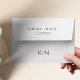 Simple minimal elegant black and white pre-printed return address wedding envelopes with bride and groom monogram and bold typography names script.