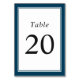 Classic and elegant, this table number card design has a double lined border in navy blue with a white background. The numbers are printed prominently on both sides of the card. To create a card for each of your tables, personalise the text for table one, then add to card. Then create the card for table 2 and add to cart. Repeat these steps for each table you will have at your wedding, banquet or event.