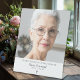 Honor your loved one with a beautifully designed pedestal tabletop funeral photo sign, created to serve as a heartfelt tribute during a funeral, memorial service, wake, or celebration of life. This elegant memorial table sign features classic motif with a tasteful cross and the phrase, "dearly loved and deeply missed". Add your cherished picture along with custom name and dates, offering a meaningful way to say in loving memory.