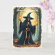 This beautifully illustrated greeting card showcases a classic Halloween skeleton witch in a black pointed hat, under a glowing moon. Perfect for fans of vintage Halloween art, witchy aesthetics, and seasonal magic. Makes a great collectable or thoughtful greeting for Halloween enthusiasts.