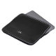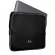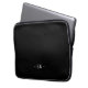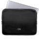 Classic monogram laptop sleeve. Small block text at centre bottom in grey on a black background.