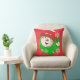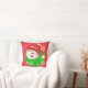 Classic Snowmen holiday pillow, so pretty and colourful, features a red with white small polka dots background with a green circle with white dots and each side has a smiling snowman with a hat, scarf, carrot nose, and snowflakes!