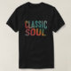 The t-shirt design channels the timeless vibes of soul music with the phrase "Classic Soul" displayed in a cool, multicolored palette. Imagine a bold "Classic" in a contrasting colour to a more soulful "Soul" with rich blues, purples, or even a touch of gold. The letters themselves could be a stylish mix of hues, or each word could be a single, deep colour with a slightly distressed or vintage feel.