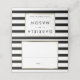 Classic stripe wedding | faux gold foil place card with a classic black and white stripe background. These elegant place cards feature an elegant faux gold foil border framing your guest details and on the reverse, your names and special date set in chic typography. Designed by Thisisnotme©