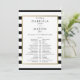 This elegant wedding schedule timeline features an elegant faux gold foil border framing your wedding details set in chic typography on a classic black and white striped background. Designed by Thisisnotme©