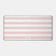This desk mat features a white name or monogram set of initials on a classic striped pattern in blush pink on white.