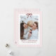 Merry Christmas Holiday Card with a Simple Classic Pink Stripes with Red Bow Frame, Merry Christmas and one Photo. Perfect for sending warm wishes to loved ones during the holiday season!